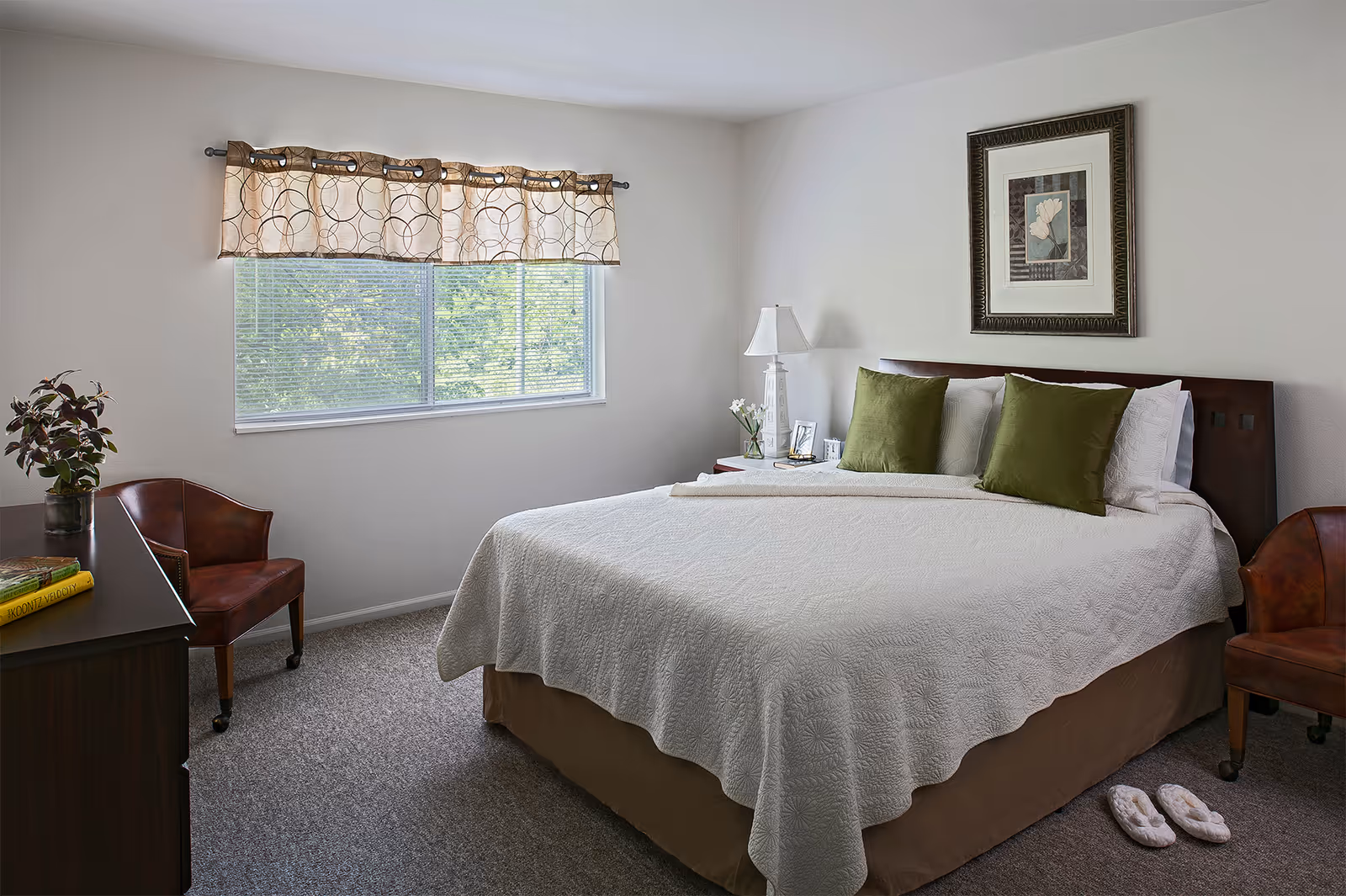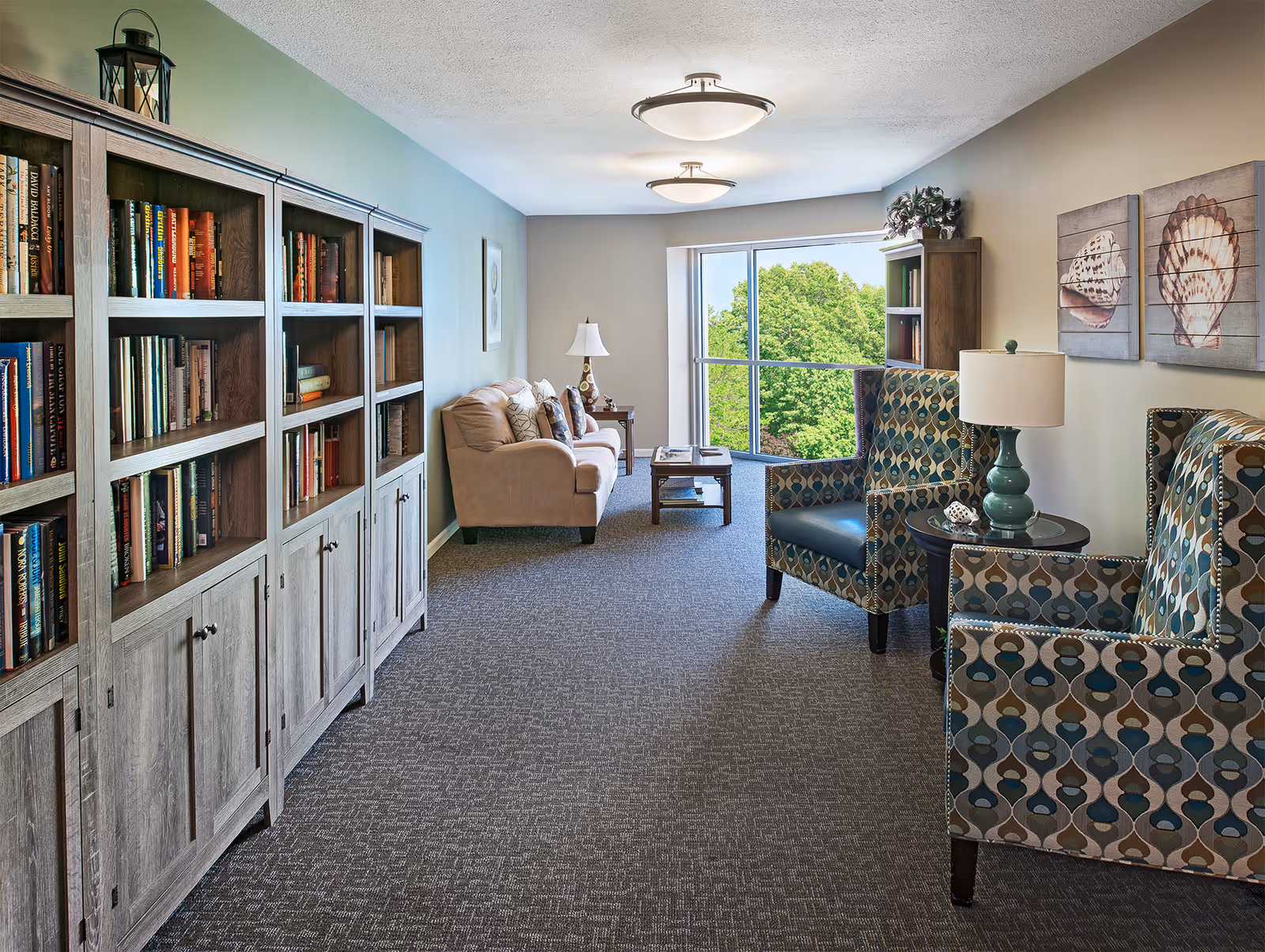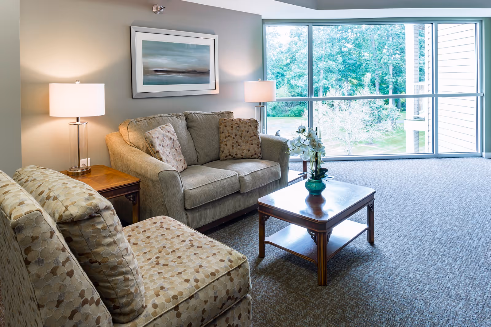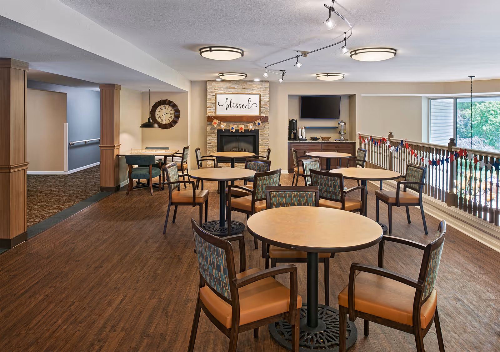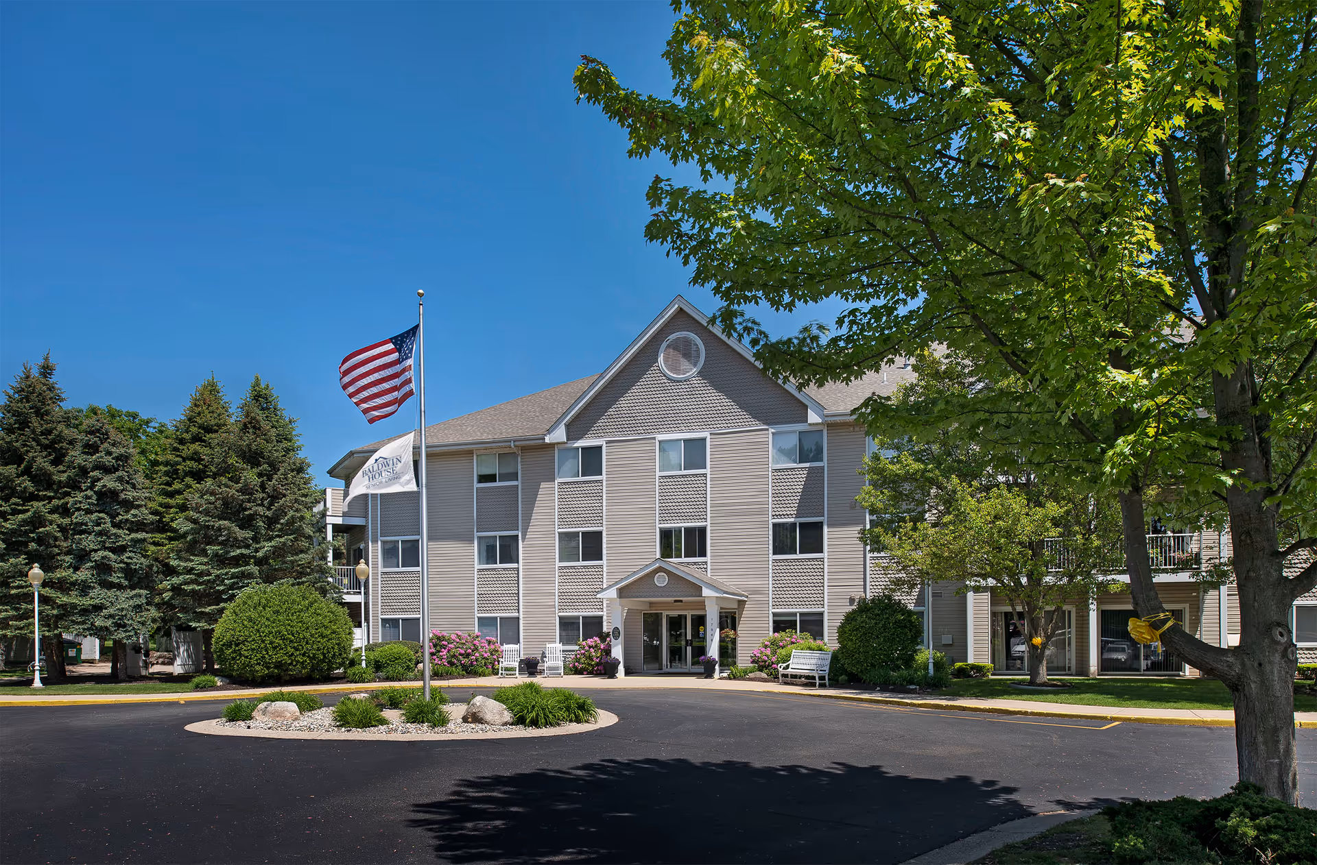 Baldwin House Senior Living Lloyd's Bayou sits among green spaces and lush trees in a peaceful area, and the building has three stories with several housing options, including private rooms, one-bedroom, and two-bedroom apartments, some with private balconies and views of the surrounding greenery, and room sizes ranging from 670 up to 1,050 square feet, so residents can choose what fits them best, and for those who like to cook, some apartments offer full kitchens and private entrances, though these are limited. Seniors can bring pets that weigh up to 30 pounds, and the building has accessible, barrier-free apartments with individual climate control and kitchenettes, making daily life comfortable and safe for residents with mobility needs.
