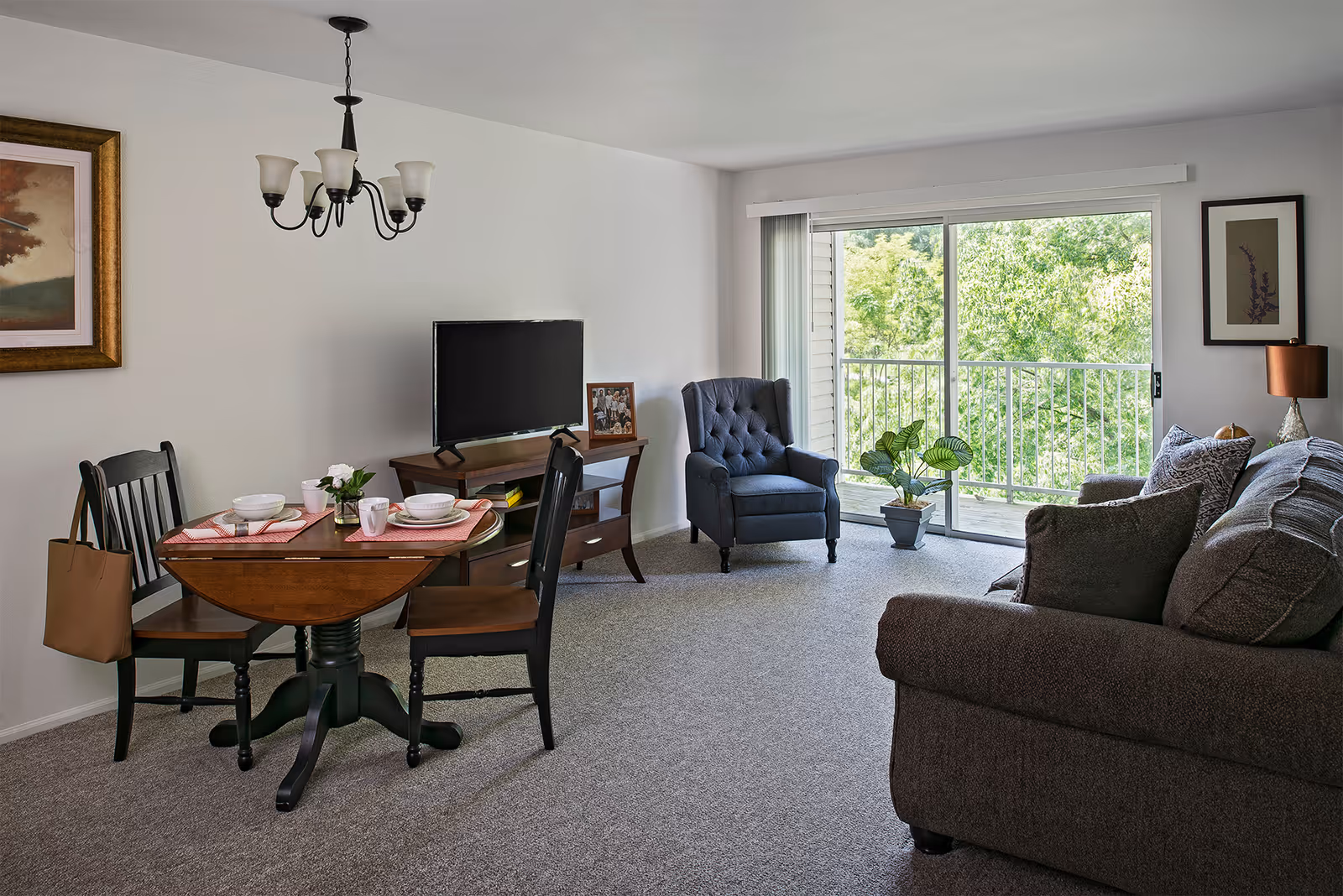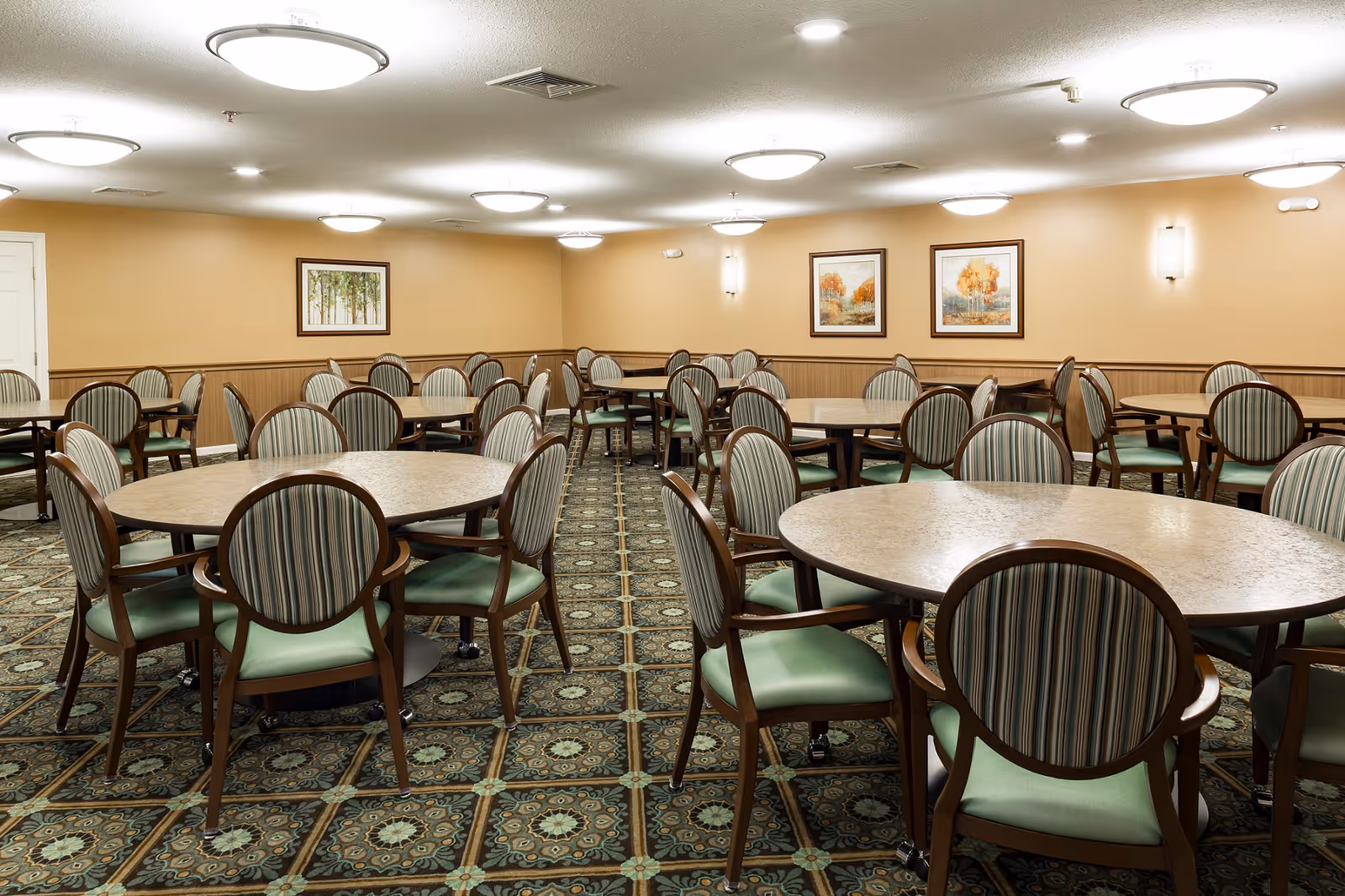 Meals are covered, with three per day served restaurant-style in the dining room, and snacks are available in the café snack area, so no one has to worry about cooking unless they want to. Housekeeping, laundry, and linen services take most chores off the residents' list. The transportation and parking services mean residents can get to doctor's visits or appointments in town with ease.
