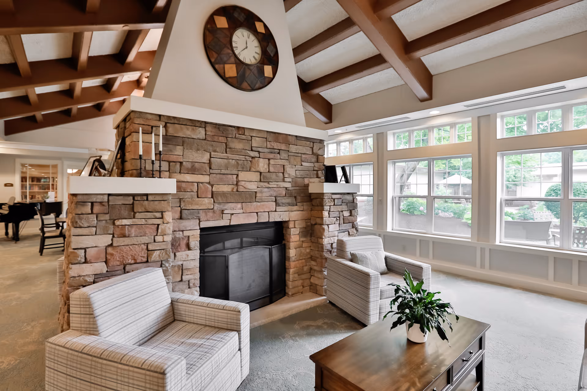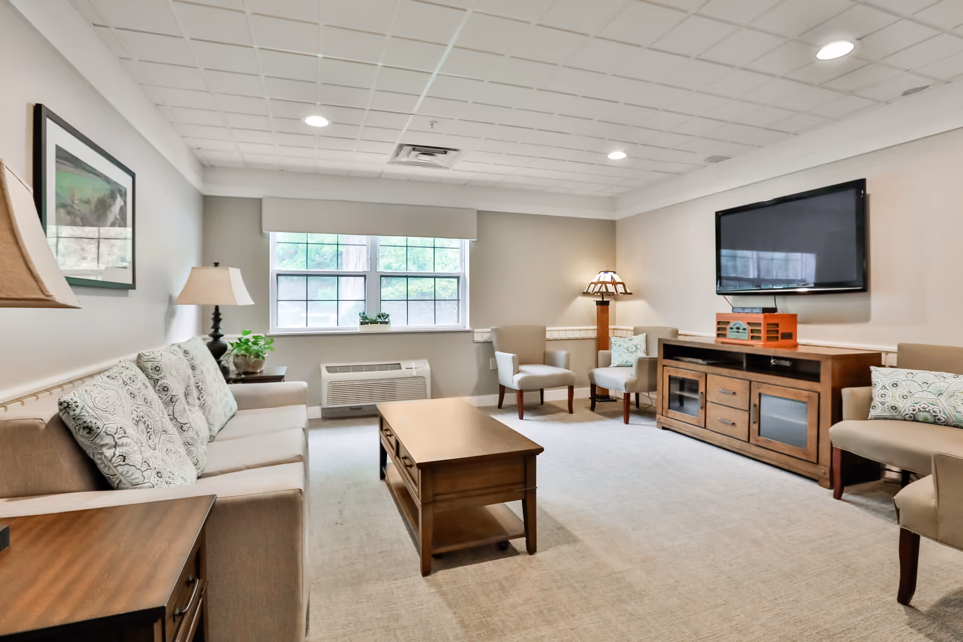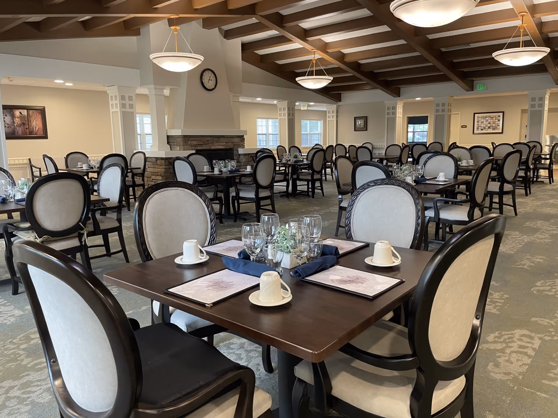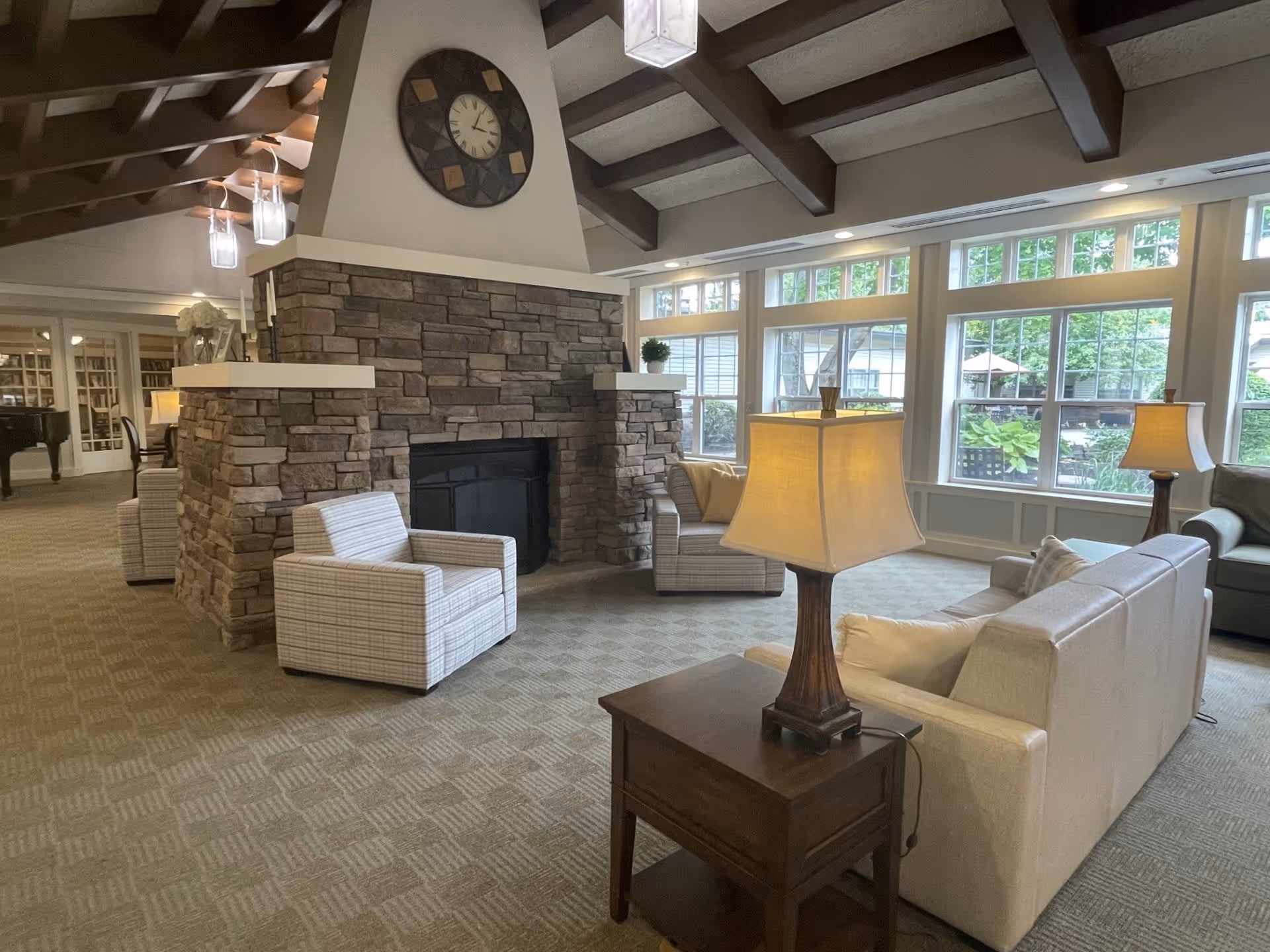 Staff and resident experience: The majority of reviewers highlight the warmth, friendliness, and individual attention provided by many aides, nurses and activity staff. Multiple reviews praise staff who know residents by name, create a family-like atmosphere, and go above and beyond (including outreach to families and helpful admissions/sales interactions). Memory care and Alzheimer’s services receive many positive mentions: reviewers describe dementia-friendly programming, Life Guidance/memory care units with engaged staff, and measurable improvements in residents’ alertness and mobility. Therapy services (biweekly PT/OT, on-point therapy) and medication management are noted as beneficial to some families. The facility's smaller scale, Adirondack-lodge feel, renovated interiors, and appealing common areas (library, movie theater, piano, courtyard with bird feeders and fountain) are repeatedly praised and contribute to residents feeling at home.