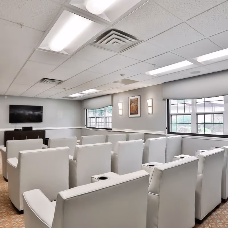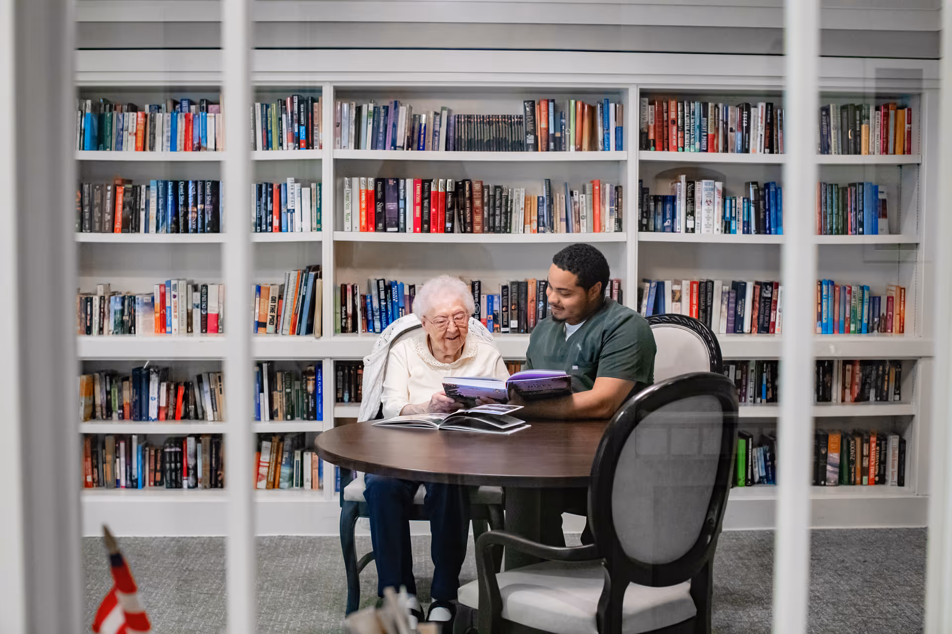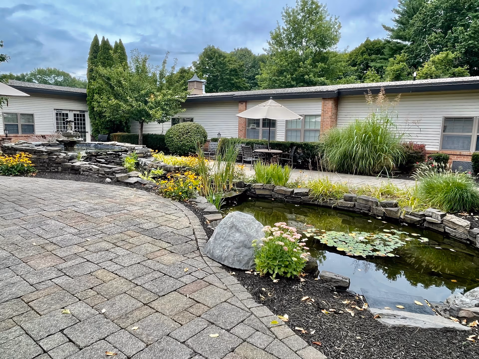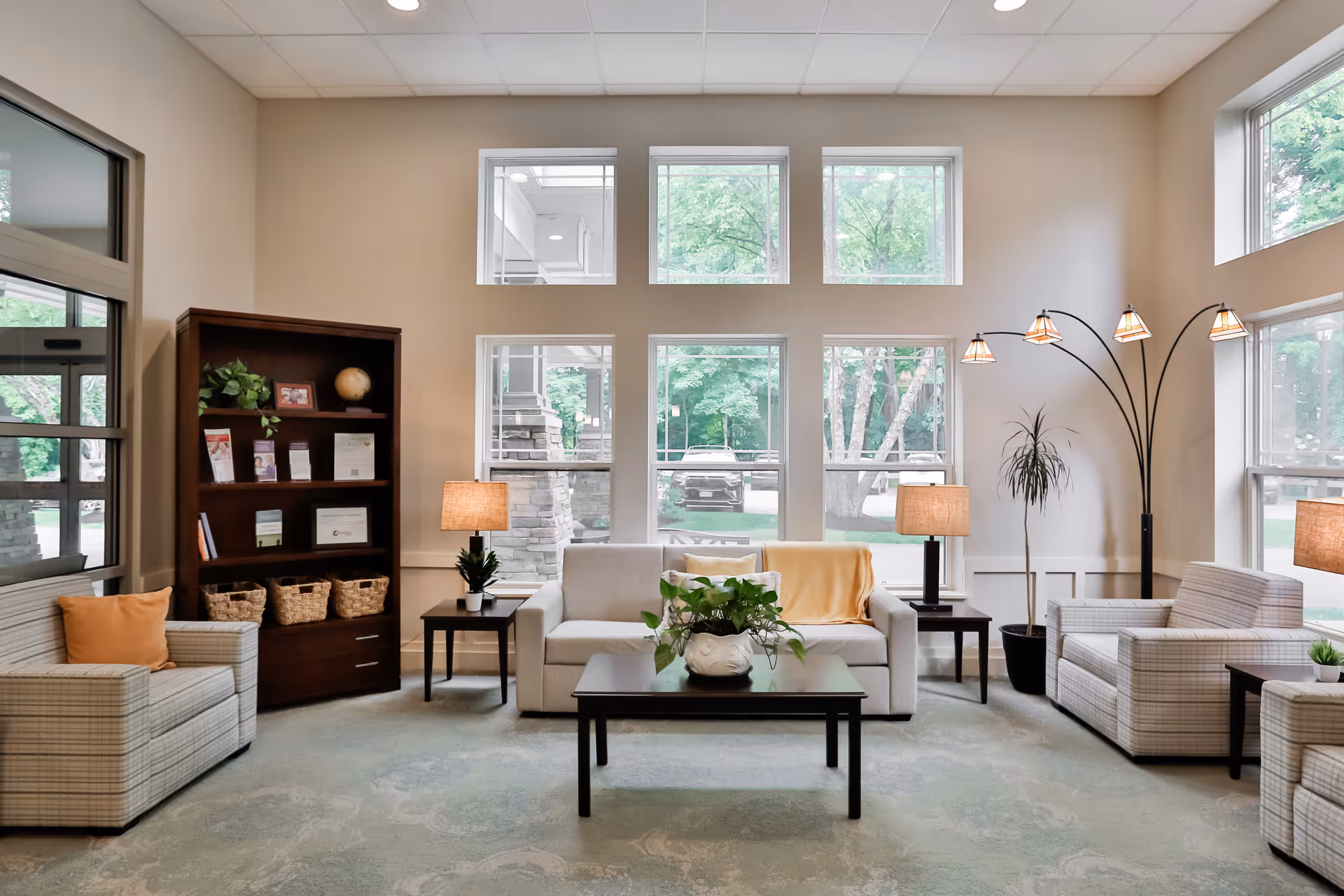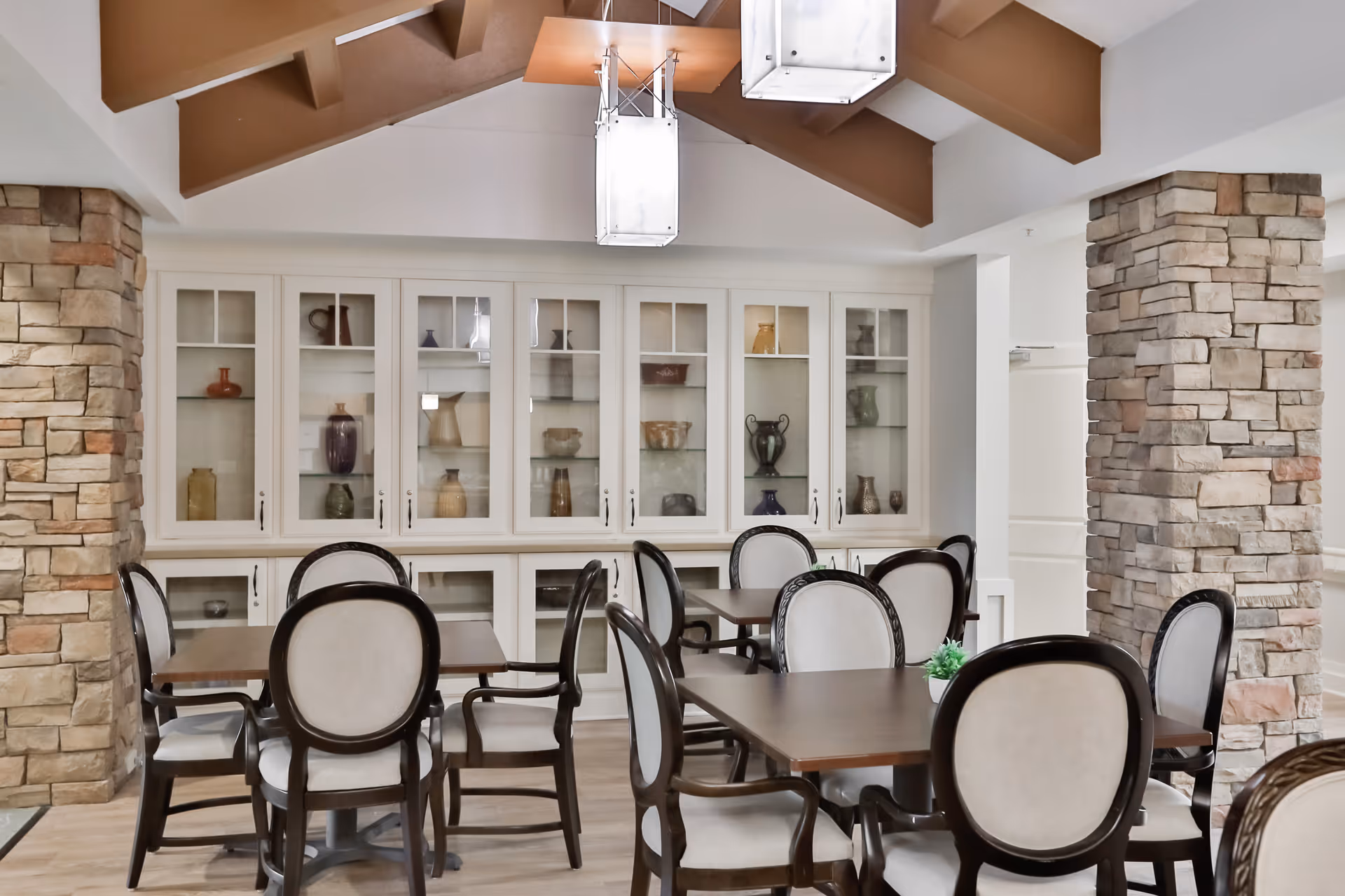Staff and resident experience: The majority of reviewers highlight the warmth, friendliness, and individual attention provided by many aides, nurses and activity staff. Multiple reviews praise staff who know residents by name, create a family-like atmosphere, and go above and beyond (including outreach to families and helpful admissions/sales interactions). Memory care and Alzheimer’s services receive many positive mentions: reviewers describe dementia-friendly programming, Life Guidance/memory care units with engaged staff, and measurable improvements in residents’ alertness and mobility. Therapy services (biweekly PT/OT, on-point therapy) and medication management are noted as beneficial to some families. The facility's smaller scale, Adirondack-lodge feel, renovated interiors, and appealing common areas (library, movie theater, piano, courtyard with bird feeders and fountain) are repeatedly praised and contribute to residents feeling at home.