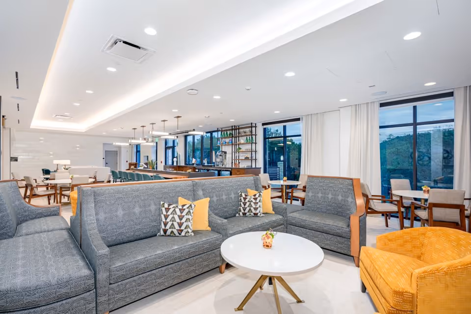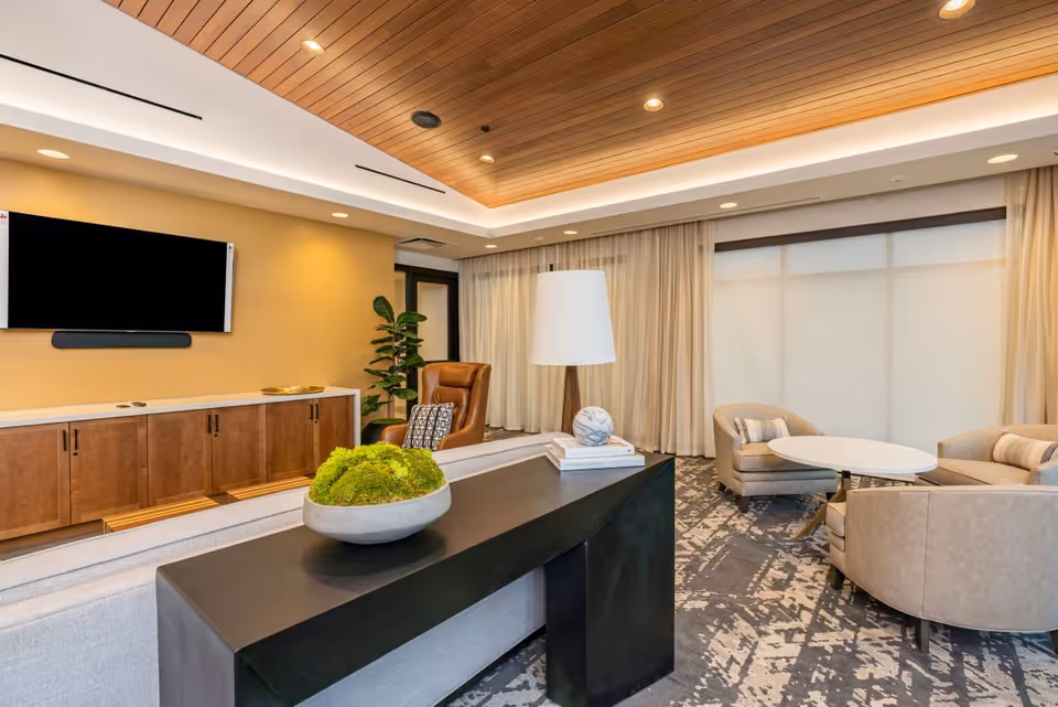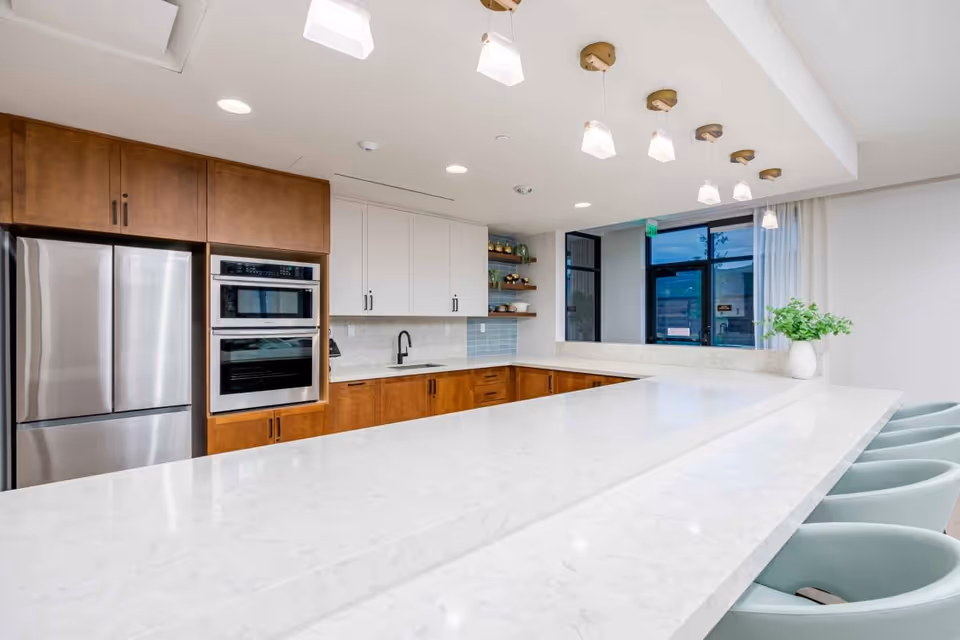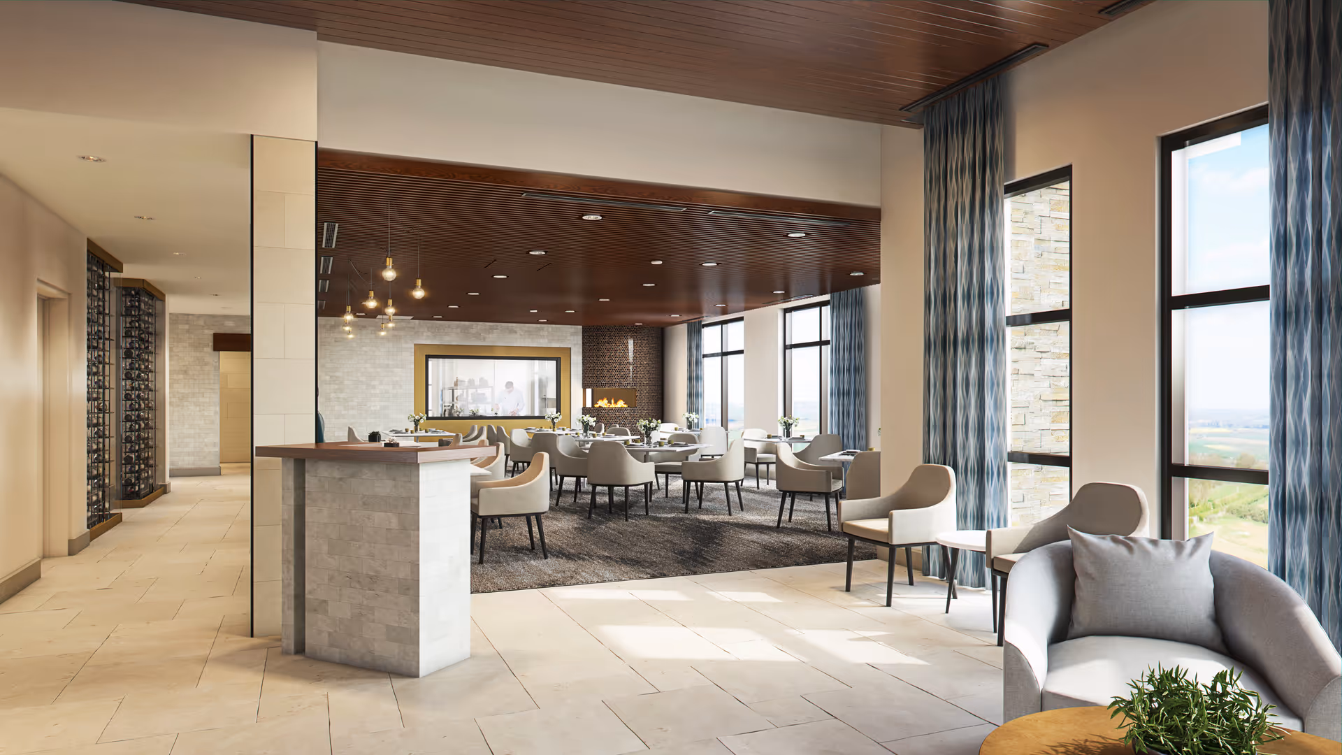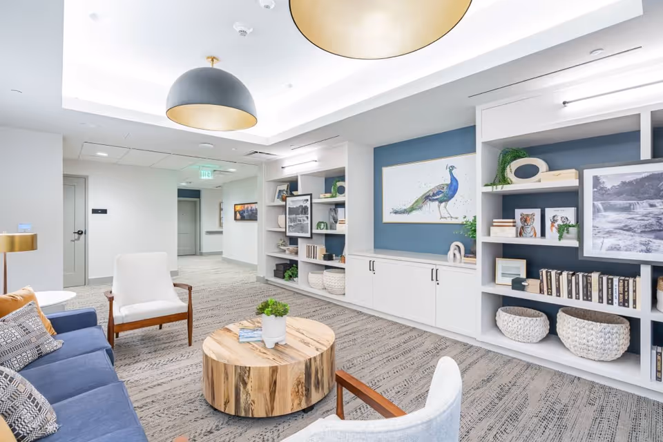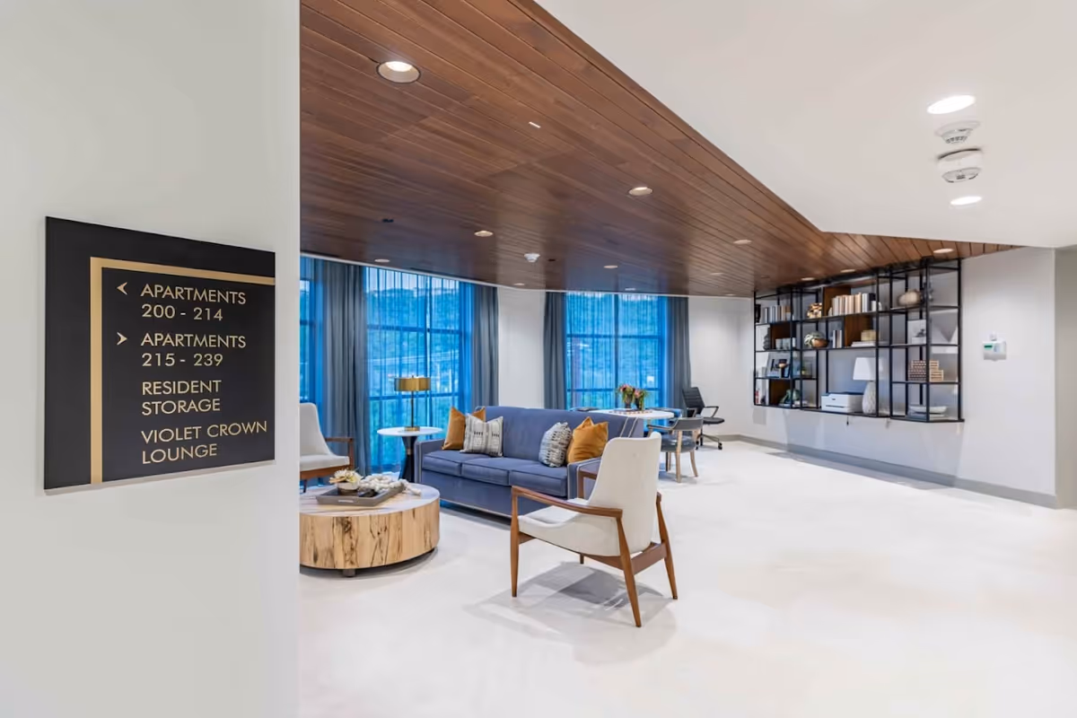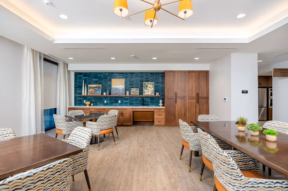 There's a bunch to do every day - the staff run programs for fitness, art, cooking demos, movie nights in their 1987 Theatre, wine tastings, workshops, live music, continuing education classes, and even outings for shows, shopping, or trips to local hospitals like Seton Northwest and medical clinics right nearby, so staying active and social is easy if someone wants that. The Reserve has big community rooms like the Capitol Club Restaurant for homemade and local meals, and there's an exhibition kitchen, plus rooms for worship, fellowship, and meditation. Food-wise, there are fine and casual meals each day, with meals made for allergies or diabetes, all in big dining rooms, and there's the 512 Lobby Bar with indoor and outdoor lounging plus a fire pit if folks like to gather outside, and the Violet Crown Lounge upstairs gives big views from the penthouse area.