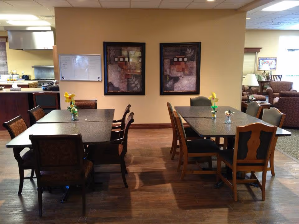Facility-related impressions are also favorable. Reviews describe the building and environment as clean and homelike, which supports a comfortable living experience. Dining is mentioned positively, with references to homemade food — a detail that suggests meals are prepared on-site or made to feel home-like rather than institutional. Activities are noted as available, contributing to engagement and quality of life rather than passive supervision alone.