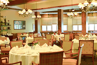 Dining is a prominent and mixed theme. Many residents praise the dining experience, calling meals excellent and noting substitutions and accommodations when needed. There are repeated comments about pleasant dining staff and many meal opportunities, and some reviewers recommend the facility based on the quality of meals. However, multiple reviews also mention variability in food quality (described as ranging from very good to mediocre), and one vendor change caused a notable 'food debacle' that was later resolved. Pandemic-related closures reduced dining access at times, which some reviewers referenced.